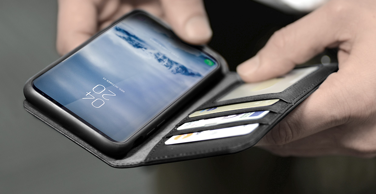 Premium Leather Wallet Case for Samsung Galaxy S9 in Black