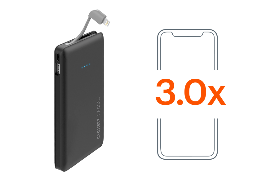 8,000mAh Power Bank with integrated Lightning™ cable